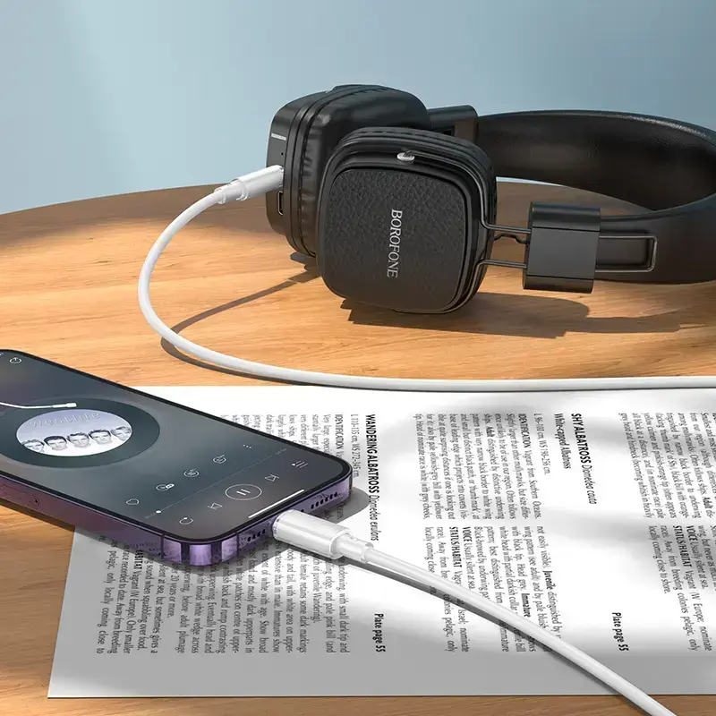 The Borofone BL21 Lemon (Lightning to 3.5 mm) cable in a 1-meter length allows Apple devices with a Lightning port to connect to audio equipment featuring a 3.5 mm AUX jack. Its white finish and robust construction ensure stable sound transmission, whether in the car or on a home stereo system.