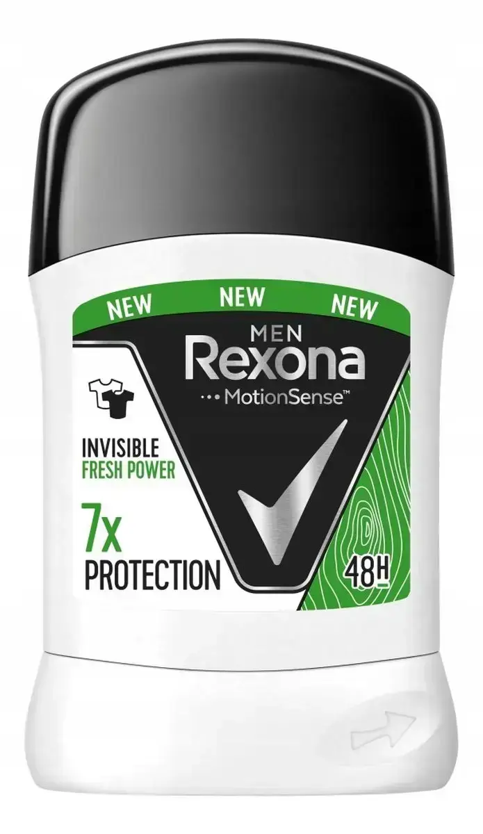 Rexona Motion Sense Men Dezodorant sztyft Invisible Fresh Power 48h 50ml Rexona Motion Sense Men Dezodorant sztyft Invisible Fresh Power 48h . Męski antyperspirant w sztyfcie. Nie pozostawia białych ani żółtych śladów na ubraniach. Skutecznie chroni przed poceniem do 48 godzin. . 7x większa ochrona.