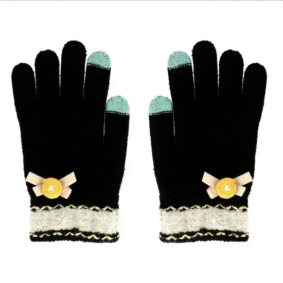 Gloves for touch screens BLACK WITH FLOWER