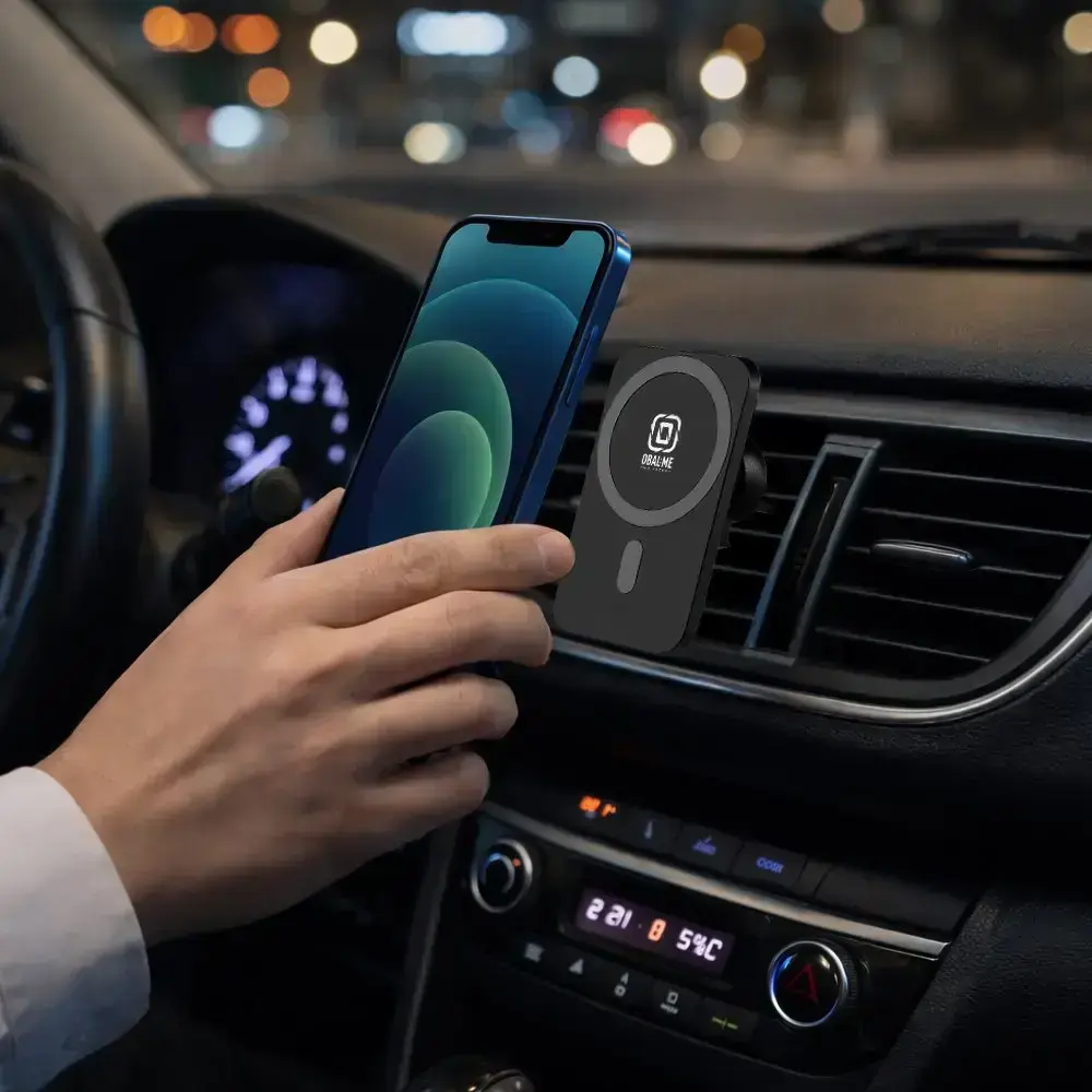 Viditelný magnetický kruh přirozeně vymezuje nabíjecí plochu a podtrhuje funkční charakter produktu.
