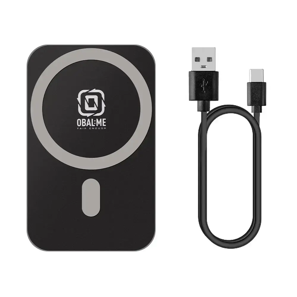 Součástí balení je USB-C napájecí kabel a kovový magnetický kroužek pro zařízení bez integrovaného magnetického systému.