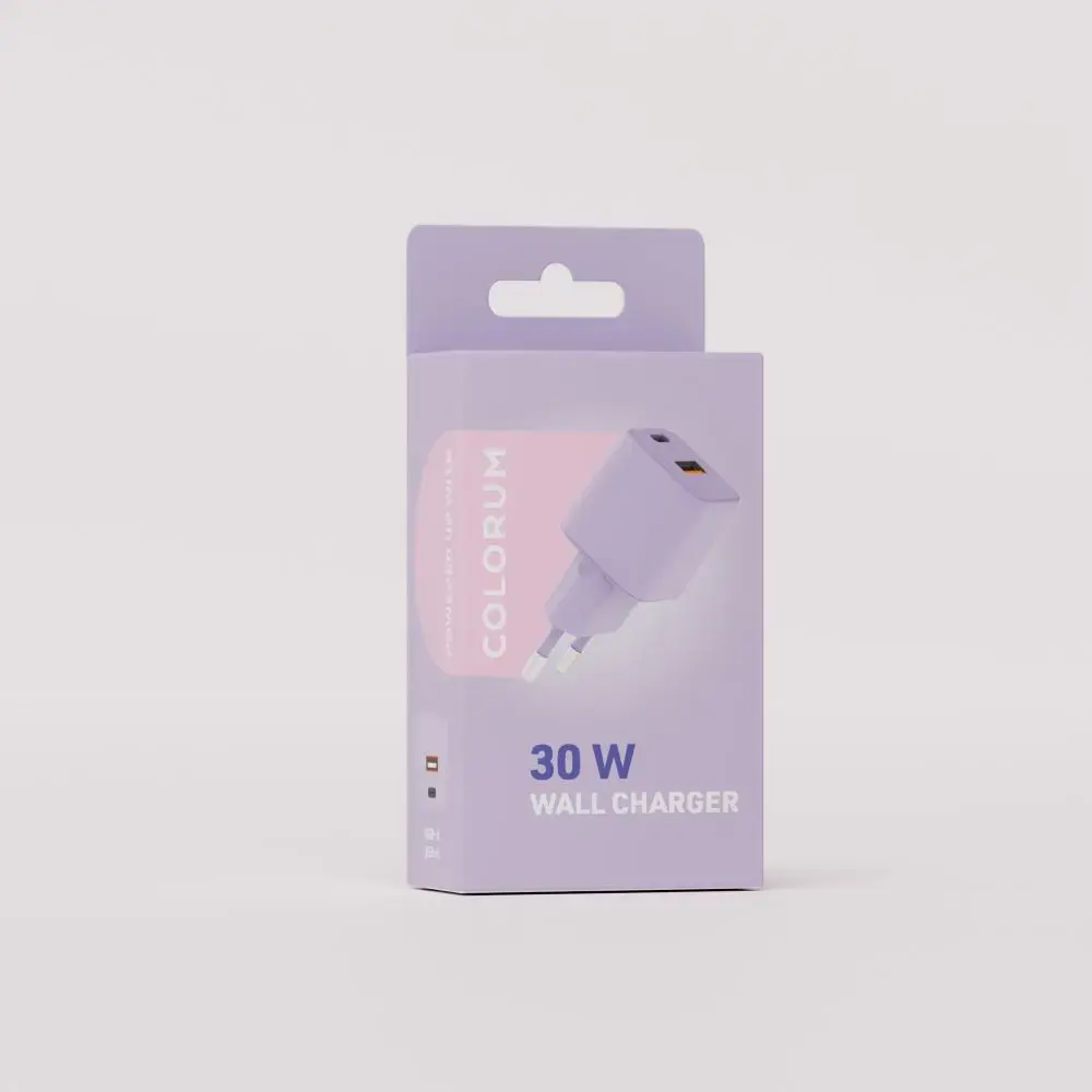 Это зарядное устройство разработано для современных смартфонов и устройств, обеспечивая эффективную зарядку с высокой мощностью. COLORUM CLS30-AC-09 предлагает 30W зарядки с поддержкой технологии Power Delivery (PD) для быстрой и надежной подзарядки ваших гаджетов. Сочетание портов USB-A и USB-C делает его универсальным для большинства устройств, а лавандовое исполнение придает приятный внешний вид.