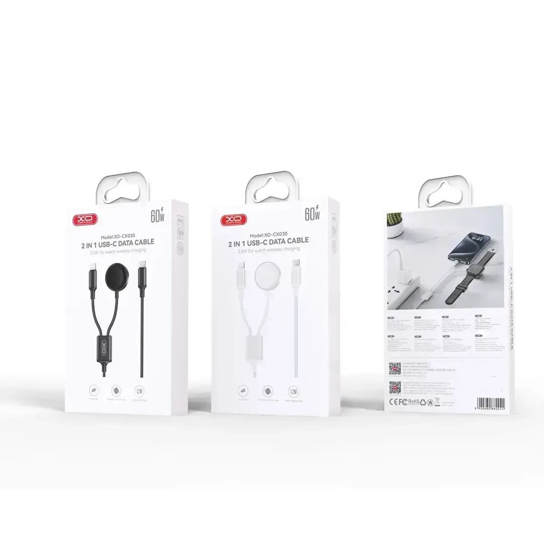 XO CX030 is a specially designed inductive charger for Apple Watch with an additional USB-C cable so that we can charge the smartphone at the same time. Connect the charger to the watch and enjoy a charged battery.