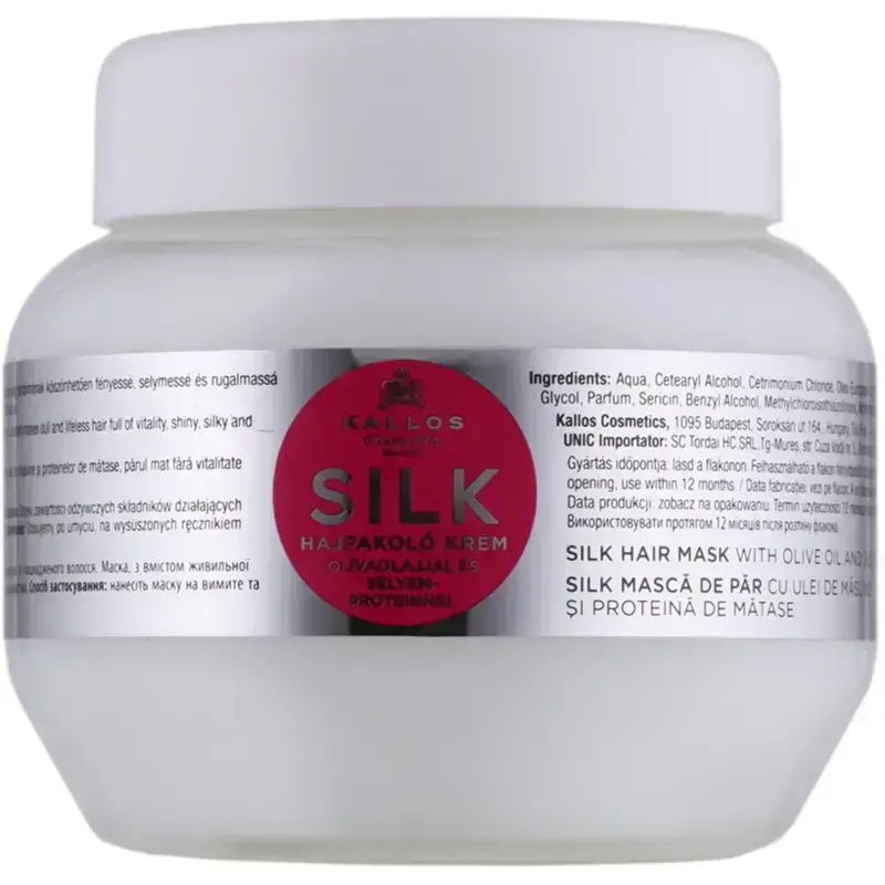 Kallos Hydrating Mask for (Silk Hair Mask with Olive Oil and Silk Proteins) KJMN (Silk Hair Mask with Olive Oil and Silk Proteins) - Volume: 275 ml.