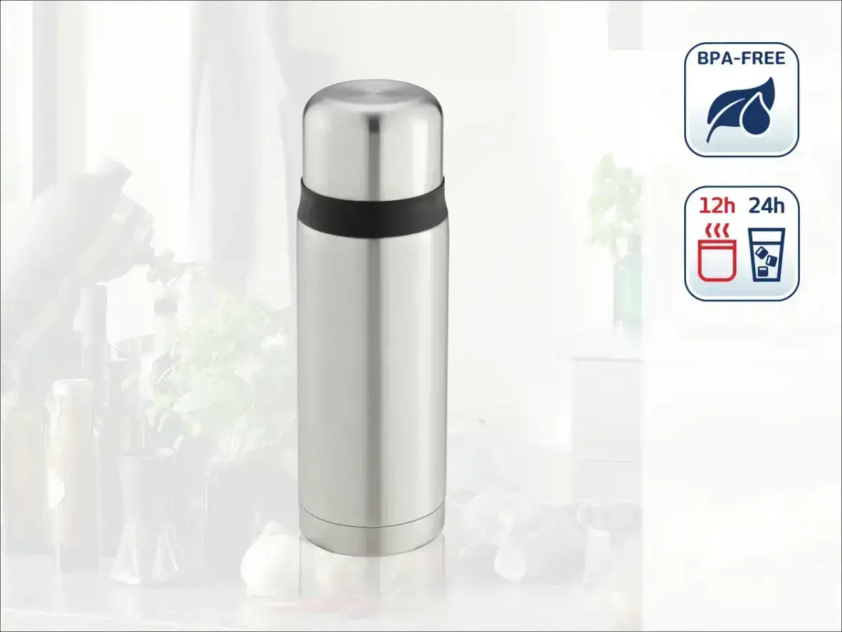 Двойные вакуумные стенки которые изготовлены из стали высокого качество, обеспечивают изоляцию высокого уровня и поддерживает горячие напитки горячими, холодные напитки холодными. Этот ударопрочный и герметичный термос идеально подходит для путешествий. Для того, чтобы пользоваться термосом как можно дольше, то просим Вас соблюдать следующие правила: Перед первым использованием тщательно вымыть термос теплой водой. Не мыть в посудомоечной машине! Для того, чтобы обеспечить лучшую тепло- и холодо изоляцию, термос необходимо прополоскать горячей водой перед наливанием горячего напитка и холодной водой – перед наливанием прохладительного напитка. Никогда не использовать микроволновую печь и духовку, чтобы нагреть термос. Термос нельзя использовать, чтобы поддерживать теплыми молочные продукты или детскую еду. Чистка термоса: Снаружи: протереть влажной тряпкой или помыть жидким моющим средством. Внутри: прополоскать только теплой водой. Остатки можно легко очистить содой или чистящим средством для зубных протезов. Гарантия 5 лет.