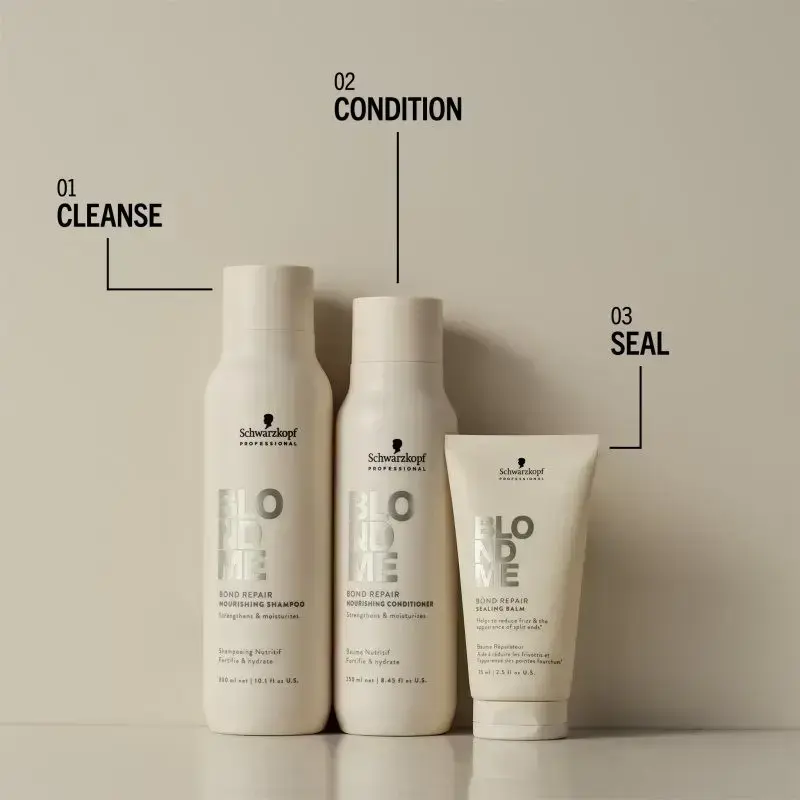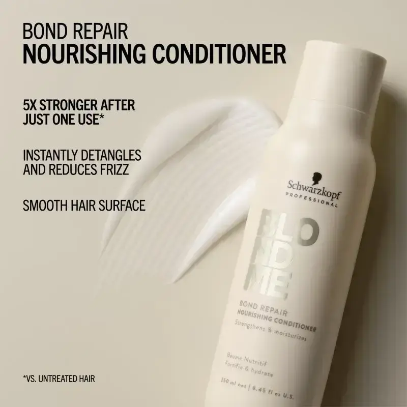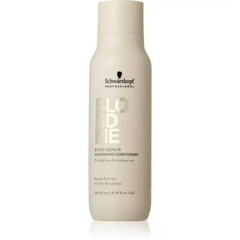 This nourishing conditioner smooths hair, controls frizz, eases detangling, and strengthens by sealing the surface for enhanced shine and healthy, resilient locks. Ideal for daily care. | Schwarzkopf Blondme Bond Repair Conditioner In Clear.