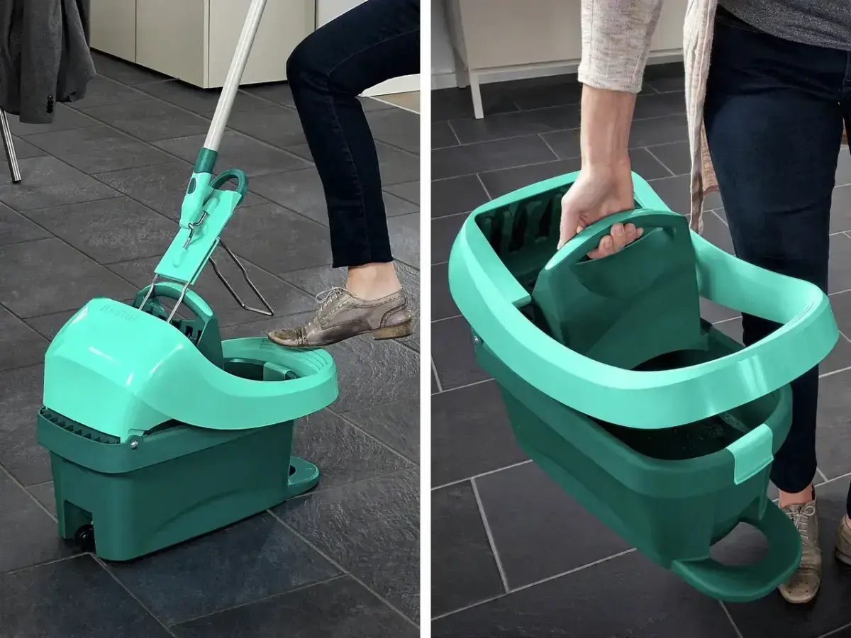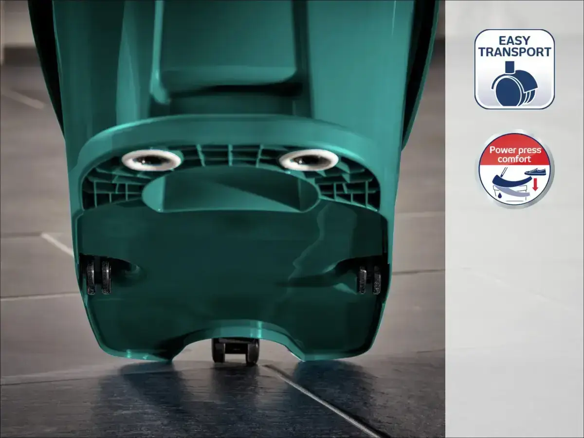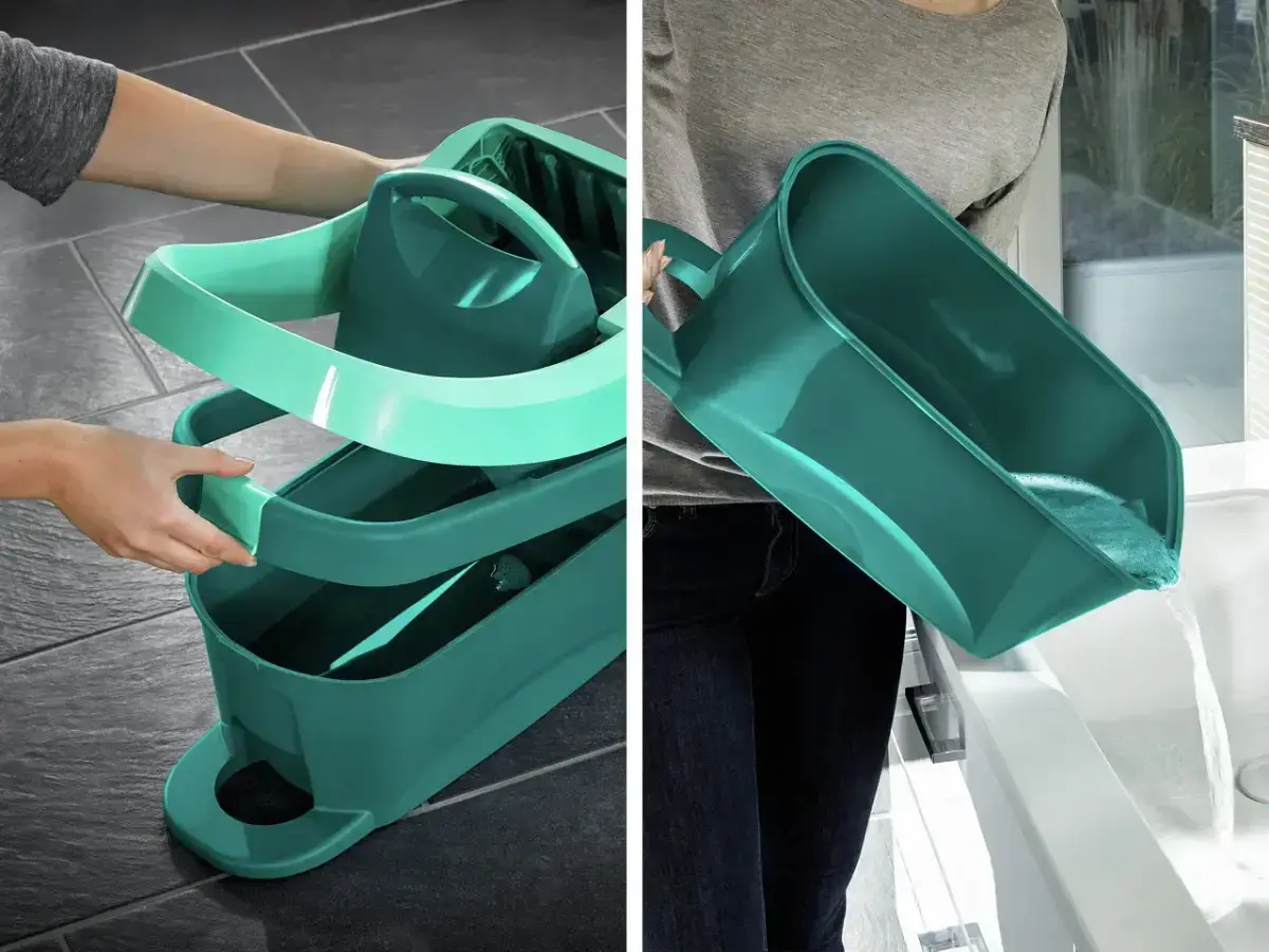 Ведро с колесами. Удобная ручка ведра. Съемная крышка ведра для облегчения слива воды при ополаскивании ведра.