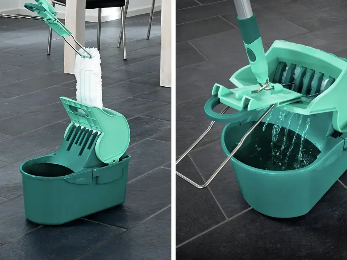 Использование: Освободите одну сторону тряпки, нажав на педаль. Снимите верхнюю часть и поместите ее в ведро. Сполосните и поместите сложенную ткань в пресс. Рама кисти также помещается в пресс. Нажав ручку щетки вниз, без особых усилий отожмите воду из тряпки. Тряпка сухая, как будто порезанная вручную.