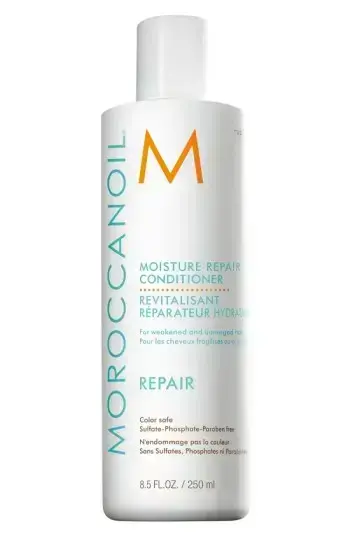 For hair that has been weakened or damaged by colour, chemical processing or heat styling, Moroccanoil® Moisture Repair Conditioner gently and effectively detangles and revives the hair to leave it nourished, manageable and strong.Highly concentrated, the reparative formula helps restore hair's health, moisture and elasticity with antioxidant-rich argan oil, reconstructive keratin and fatty acids. Colour-safe. Sulphate-free, phosphate-free and paraben-free.