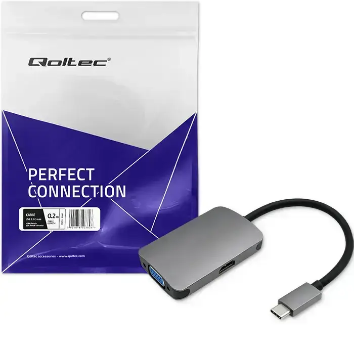 Qoltec Hub Adapter USB-C 3.1 2in1 | HDMI 4K | VGA