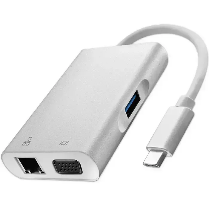 Qoltec Hub Adapter USB-C 3.1 4in1 | USB 3.0 | VGA | RJ45 | USB-C PD 92W
