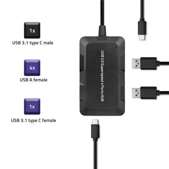 Qoltec Hub Adapter USB-C 3.1 5in1 | 4x USB 3.0 | micro USB