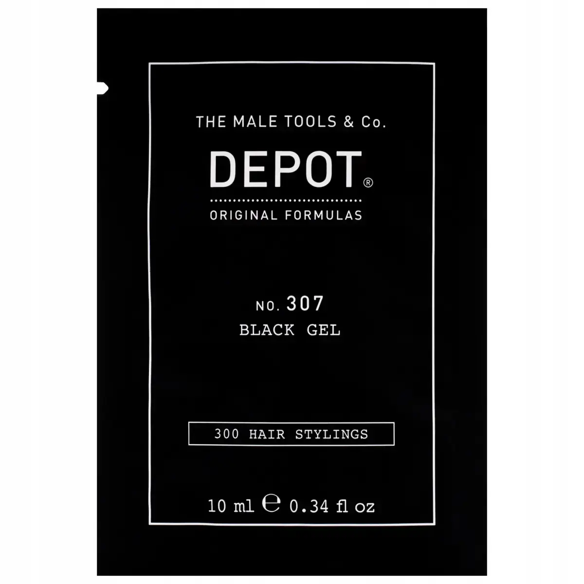 Depot, 300 Hair Stylings No. 307 Black, Botanical Complex, Hair Styling Gel, Temporary Coverage & Volume, Medium Hold, 10 ml