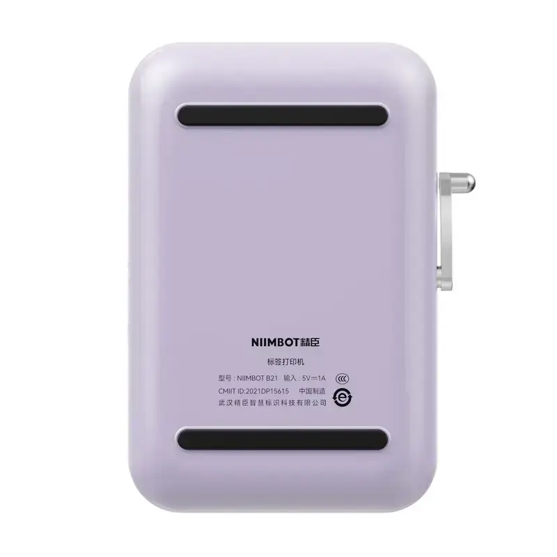 ManufacturerNiimbotModelB21 ProColorPurplePrinting methodThermal (no ink or toner)Print resolution300 dpiPrinting width20-50 mmConnectivityBluetooth / USB-CBattery capacity1500 mAhRated output5 V / 1 AOperating frequency2402-2480 MHzMaximum transmission power4 dBmOperating temperature5-45 ℃