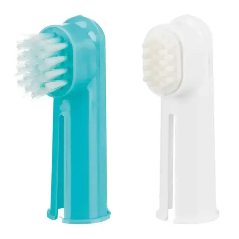 Uzpirksteņu komplekts. Masāžas suka ar gumijotiem zobiņiem smaganu masāžai un zobu tīrīšanai. Der suņiem un kaķiem.